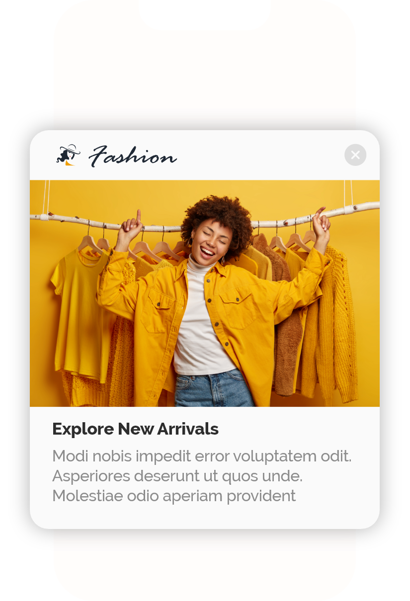Want to inform your customers about the launch of a new product? With our rich banner template, you can publish your campaign in no time.